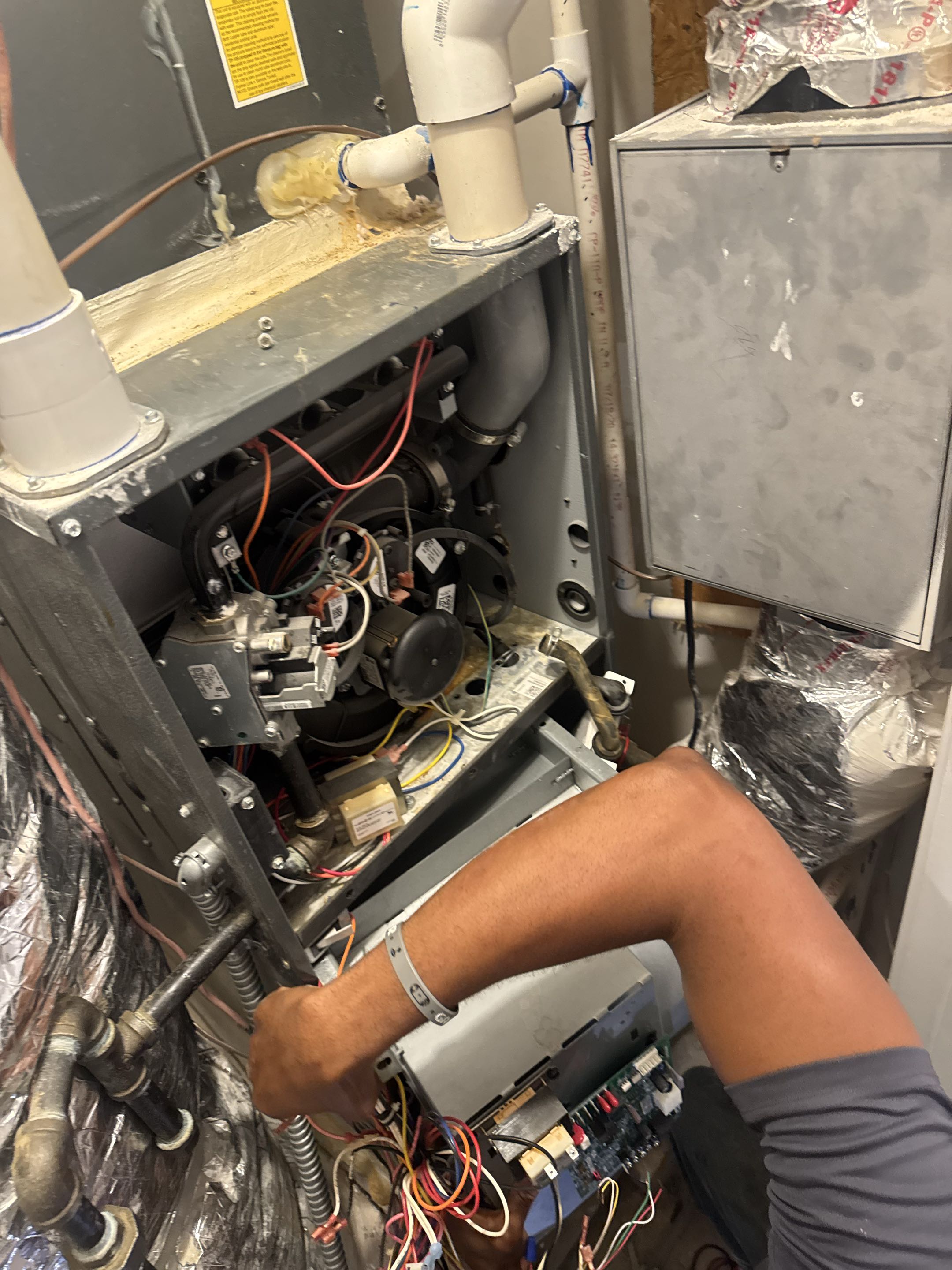 Conducted a comprehensive HVAC system maintenance and inspection in preparation for a home sale. The outdoor condenser coil was meticulously cleaned, removing debris from the base and coil fins to restore optimal airflow and efficiency. All electrical components, including capacitors, contactor, and wiring connections, were inspected to ensure safe operation. Refrigerant levels were verified, and system pressures were checked, confirming operation within manufacturer specifications. The condensate drain line was cleaned and sanitized to prevent clogs and water backup issues. The indoor air handler was inspected, focusing on blower components to ensure proper airflow and performance. Deteriorated line set insulation was noted, and a recommendation for replacement was made to improve system efficiency and prevent energy loss. The HVAC system is currently operating properly with no major issues found. The system is in good condition and ready for the home sale process.